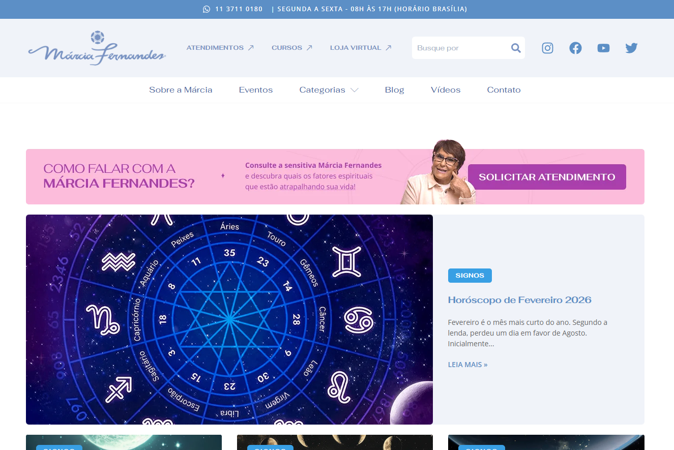 Criação do novo site da Márcia Sensitiva utilizando WordPress e Elementor
