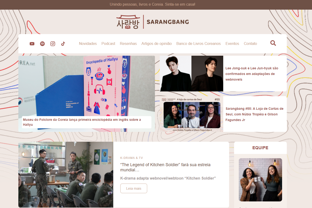 Criação do site Sarangbang, utilizando WordPress e Elementor.